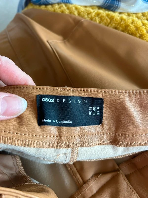 The ASOS Design Faux Leather Pencil Skirt in Brown is available in sizes M.