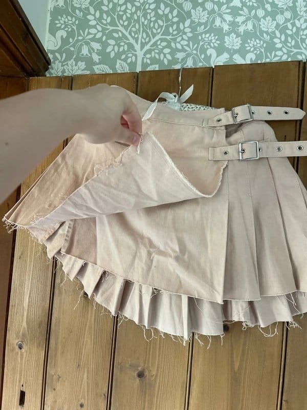 Charming Beige wrap mini skirt by ASOS Design. Features a pleated design and adjustable buckles for a customizable fit. Perfect for casual outings.