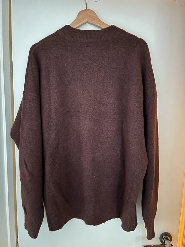 This brown knitted jumper is perfect for a cozy, casual look. It features a comfortable, relaxed fit with a classic crew neckline.