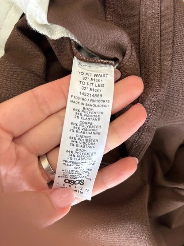 The ASOS Design Brown Slim Fit Trousers is made from polyester, viscose, elastane.
