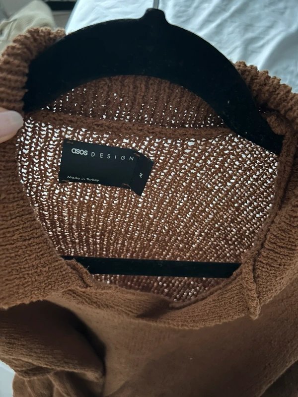 The ASOS Design Men’s Knit V Neck Jumper in Brown is available in sizes M.
