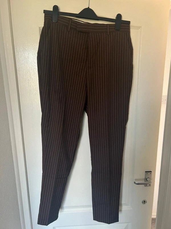 The ASOS Design Brown Striped Tailored Trousers is ideal for work, business, smart-casual.