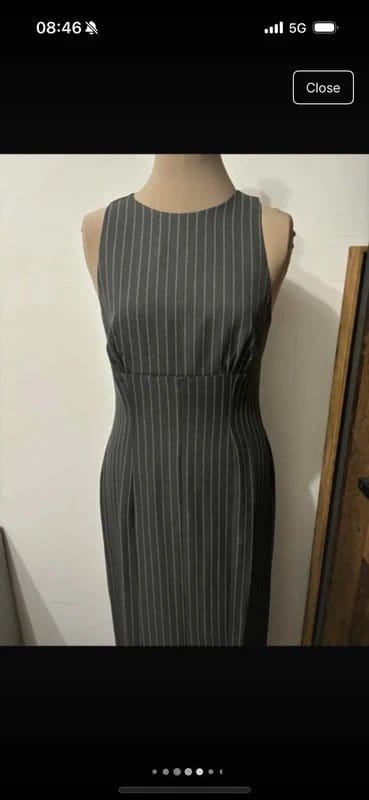 See all outfit ideasStylish maxi dress in grey and white pinstripe featuring a round neckline and sleeveless design. The regular fit and flattering silhouette make it a timeless piece for office wear.