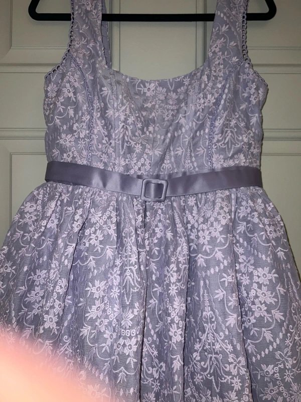 The ASOS Design Lilac Satin Prom Dress with Belt is available in sizes M.