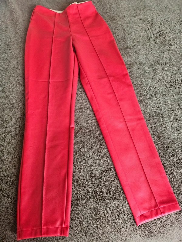 The ASOS Design Faux Leather Petite Trousers in Red is available in sizes XS.