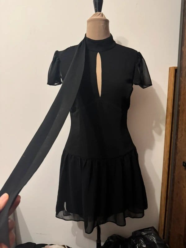 ASOS Design Black Mini Dress with Frill Hem and Cut Outs