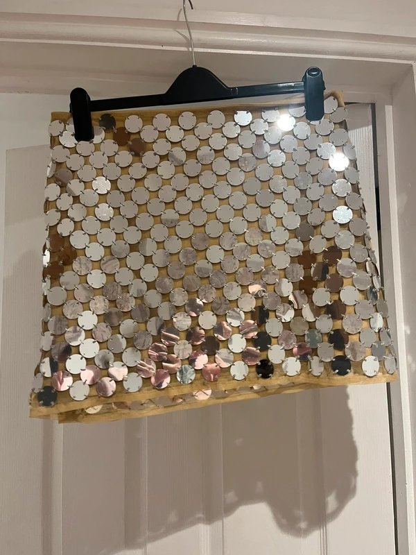 The ASOS Design Sequin Disc Skirt in Silver is available in sizes L.