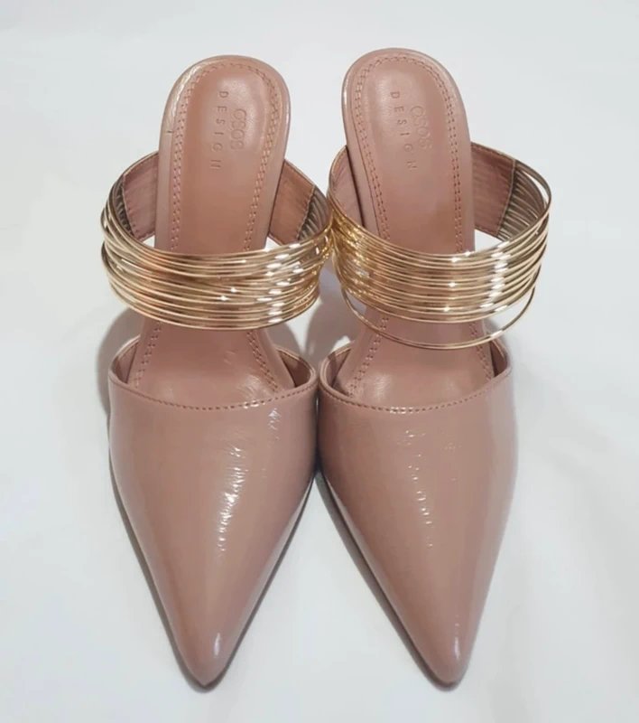 The ASOS Design Nude Patent & Gold Multi-Strap Mules is ideal for evening, party, formal.
