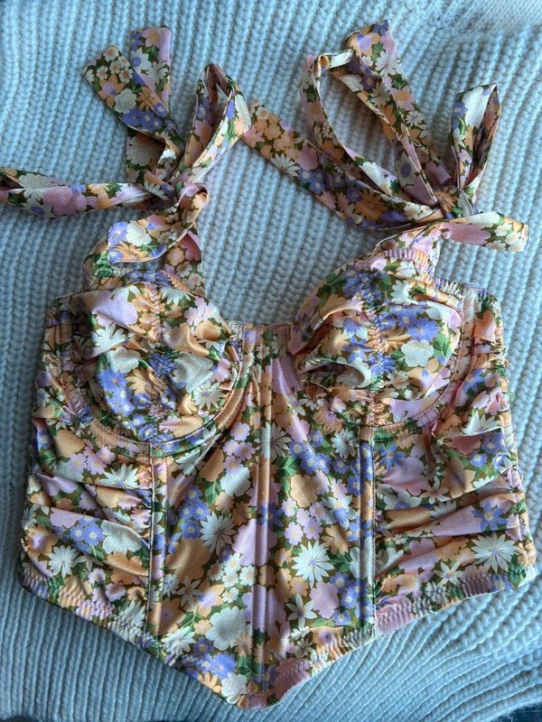 The ASOS Design Floral Tie-Up Floral Top in Multi is available in sizes XXXL, XXL, XL, XS, L, M, S.