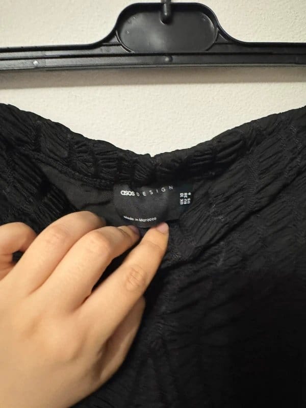 The ASOS Design Black Textured High Waisted Flared Trousers is available in sizes S.