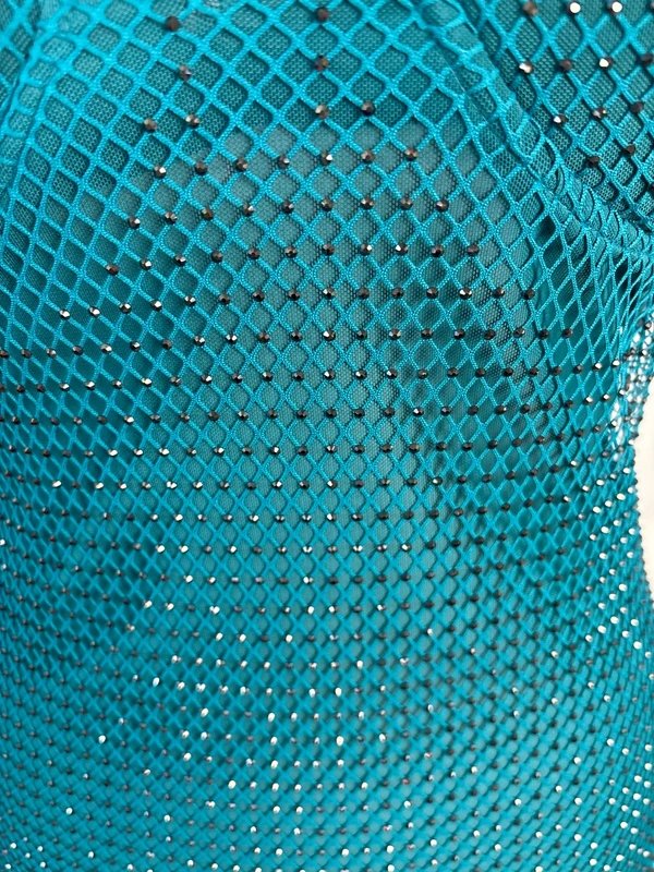 Teal Mesh Rhinestone Bodycon Mini Dress — the must-have party dress for glamorous occasions. Designed in rich teal, this bodycon mini dress features a sheer mesh rhinestone overlay, padded sweetheart cups, and a halter strap detail. Crafted from lightweight sheer mesh with sparkly rhinestones, it catches the light beautifully. Perfect for party glam and evening events.