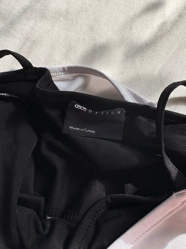 The ASOS Design Black and White Vest Strappy Top is made from polyester, spandex.