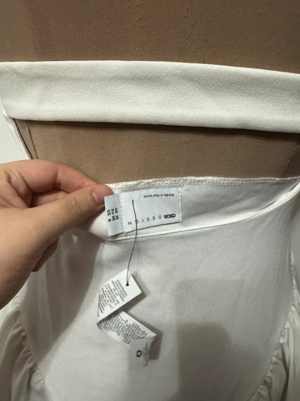 The ASOS Design Chic Halter Mini Dress in White is available in sizes S.