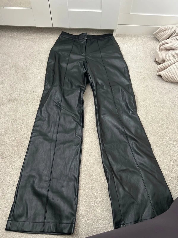 The ASOS Design Black Leather Wide Leg Trousers is available in sizes S.