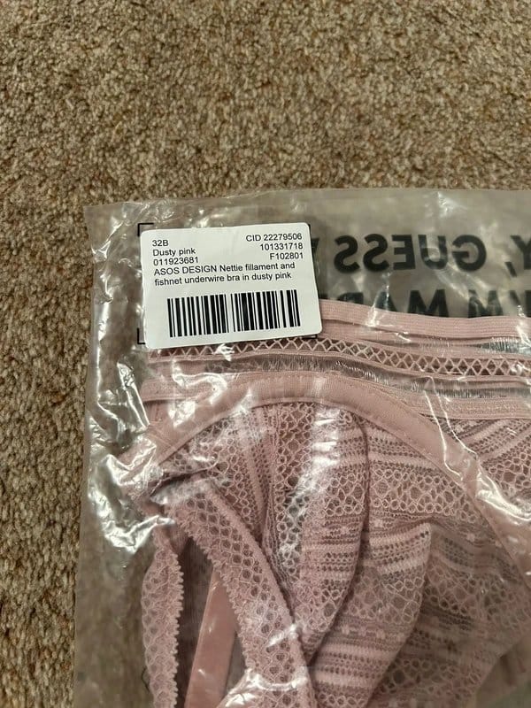 The ASOS Design Dusty Pink Fishnet Bra 32B is available in sizes L.
