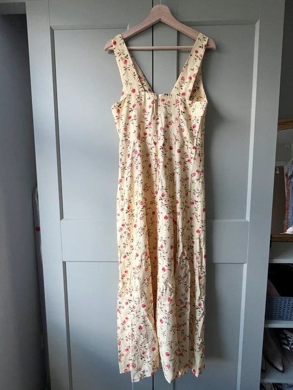 “Pair with white sandals and a straw hat for a summer wedding guest look.”