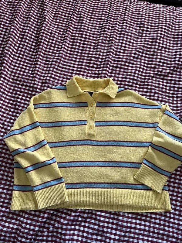 See all outfit ideasBright yellow and blue striped rugby style collared jumper by ASOS Design. Made from a soft knit fabric, this jumper features a crew neckline and ribbed cuffs and hem. Ideal for casual wear.