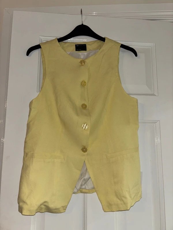 The ASOS Design Yellow Sleeveless Waistcoat is available in sizes M.