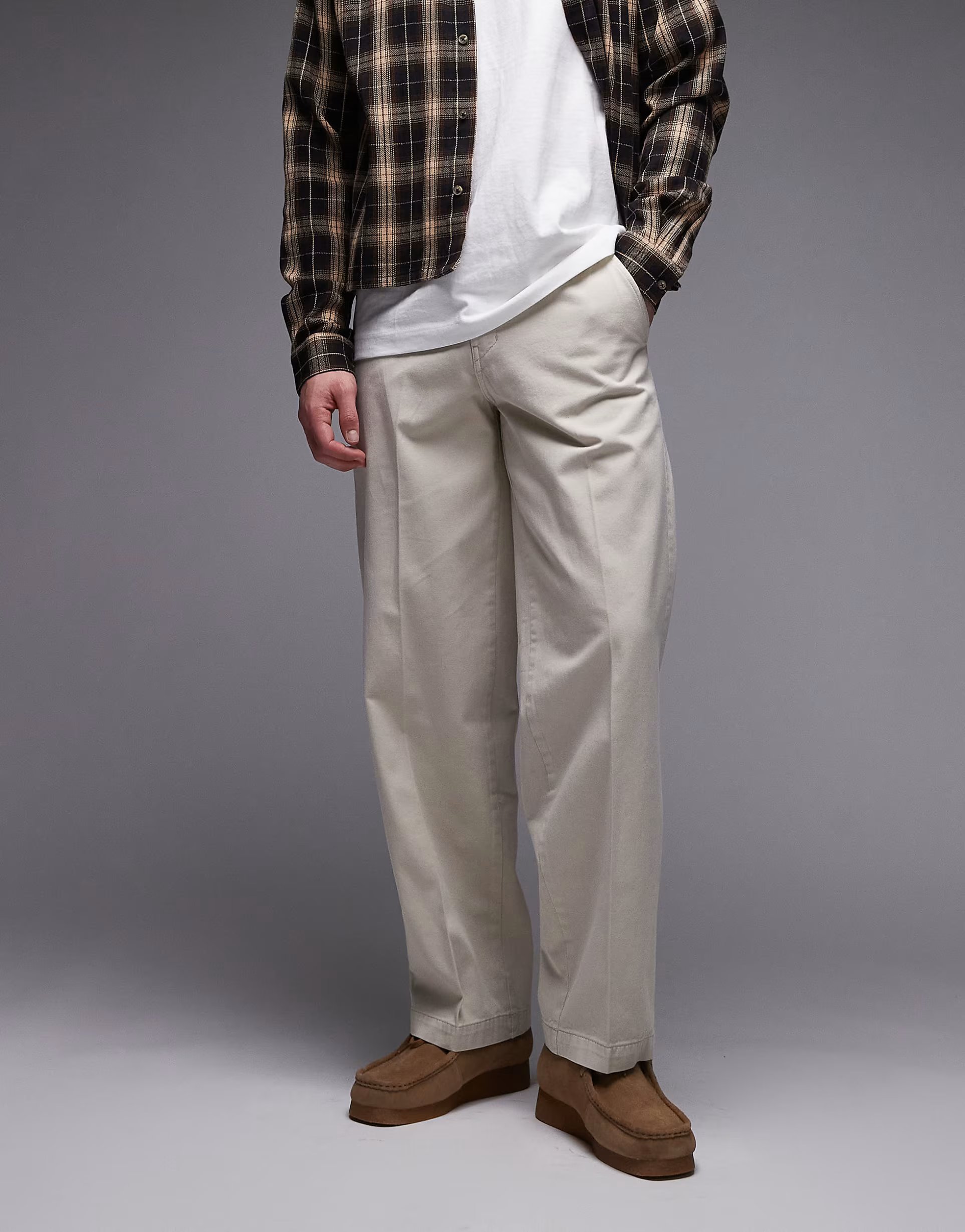Crafted for a relaxed and comfortable fit, these grey baggy work trousers feature a straight leg design and a mid-rise waist for a casual yet professional look.