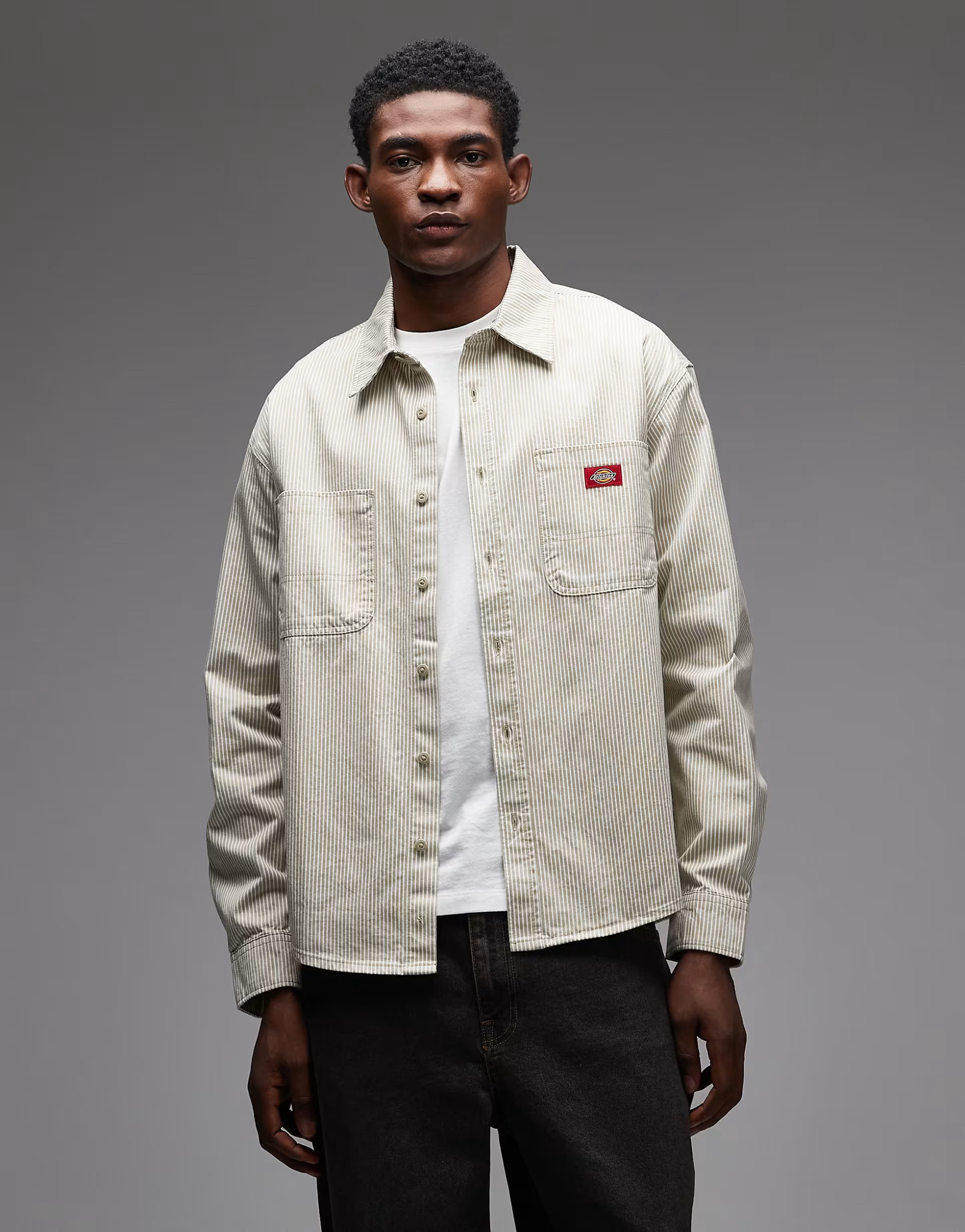 The ASOS Dickies Striped Long Sleeve Work Shirt in Off White is ideal for work, casual.