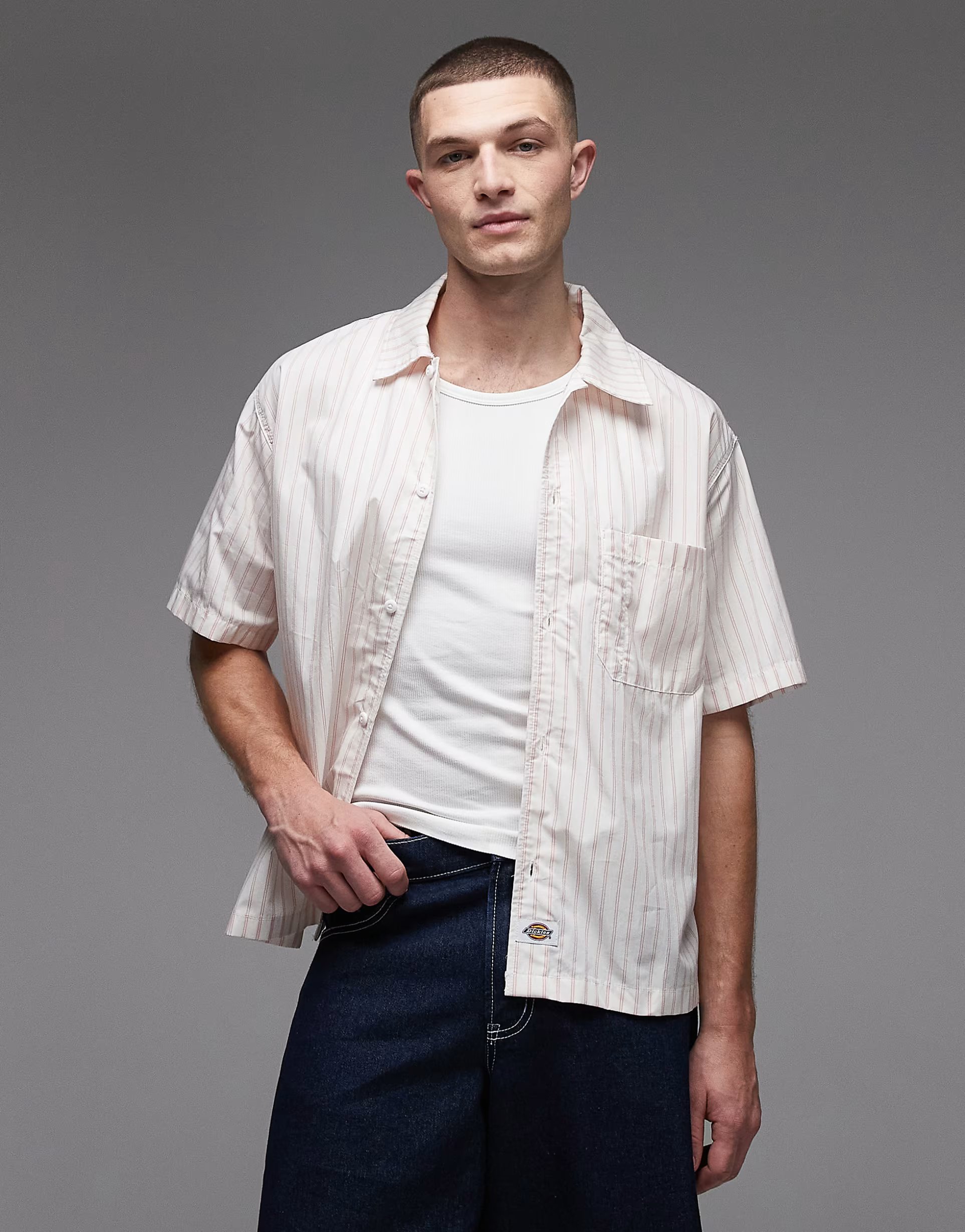 The ASOS Dickies Venedocia Short Sleeve Striped Shirt in White is ideal for casual, smart-casual.