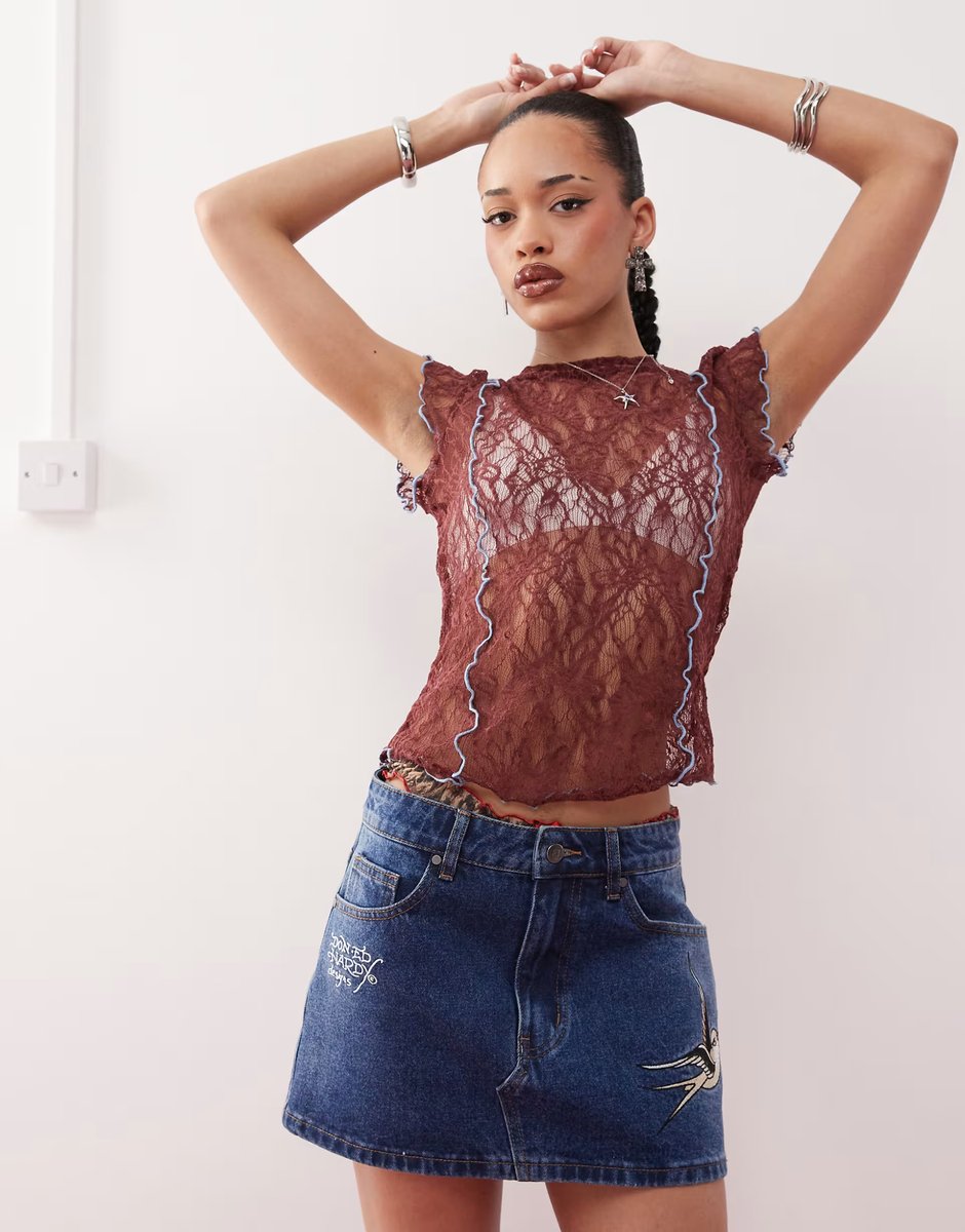 The ASOS Ed Hardy Denim Mini Skirt in Washed Indigo is ideal for casual, smart-casual.