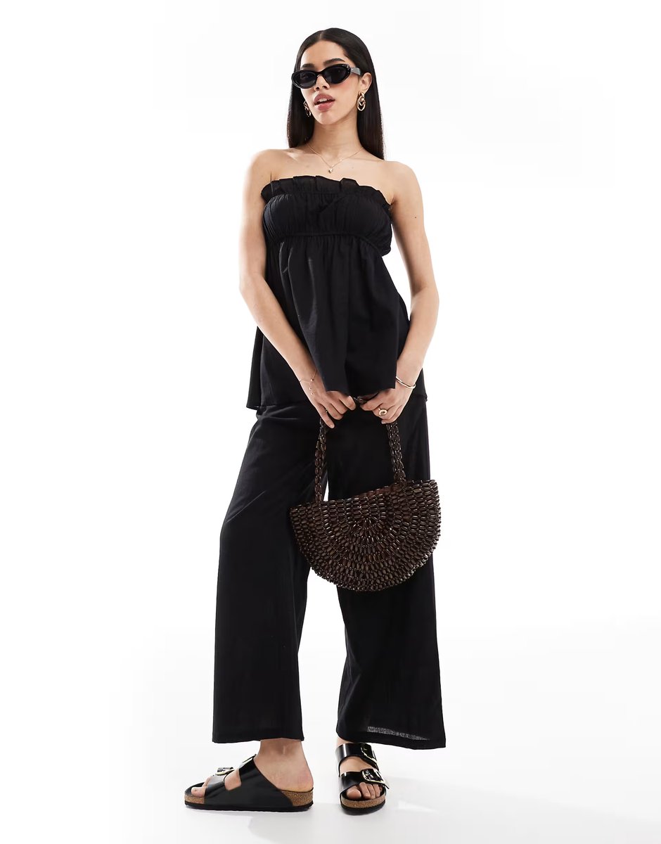 The Esmee Exclusive Black Ruched Linen Look Co-ord is ideal for casual, smart-casual, evening.