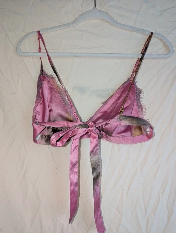 The ASOS Pink Satin Bralet for Holiday Rave is available in sizes M.