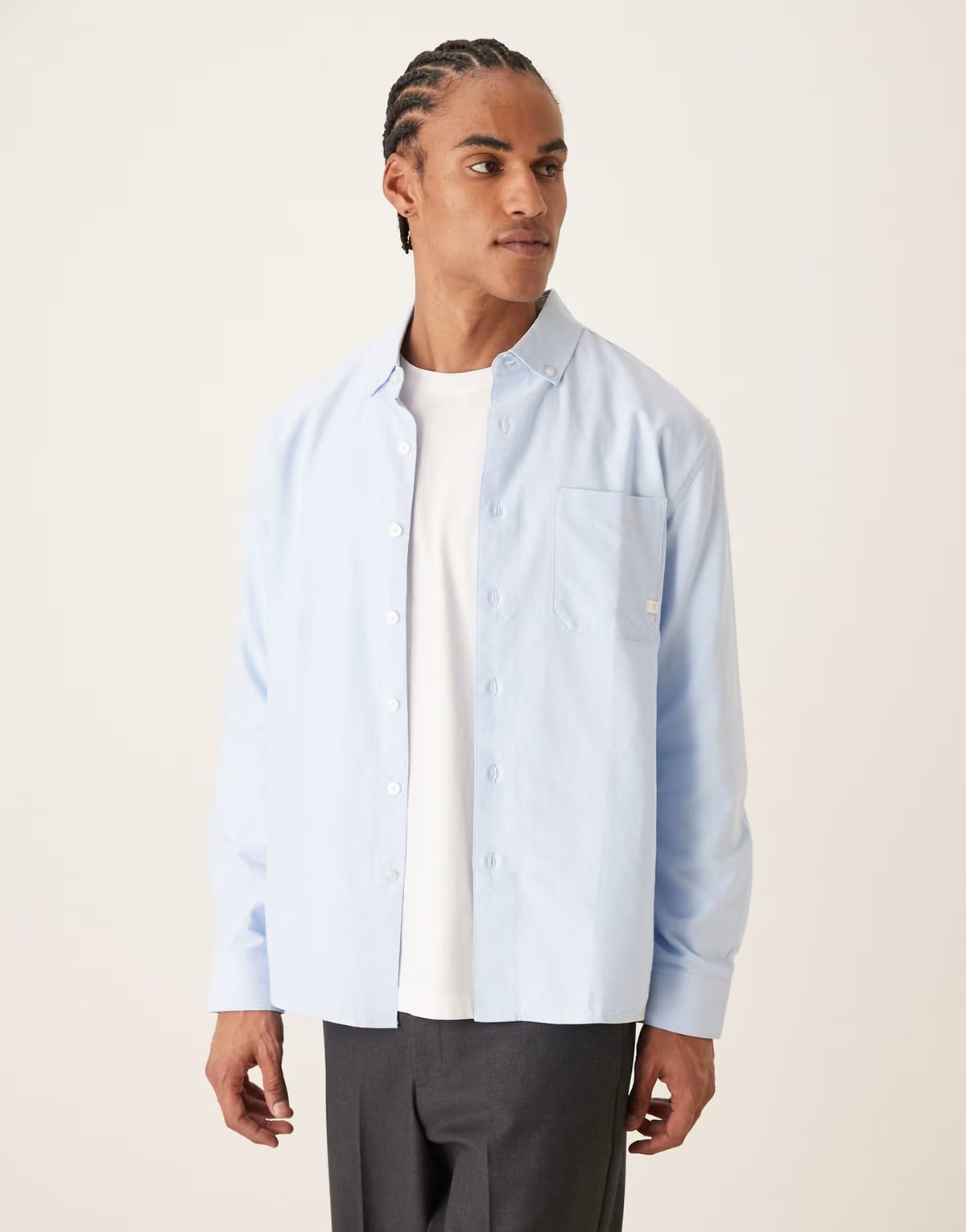 Crafted with a long sleeve design, this box fit shirt by Farah Brewer from ASOS is made from soft, breathable fabric. The sky blue hue adds a refreshing touch, perfect for casual or smart-casual occasions.