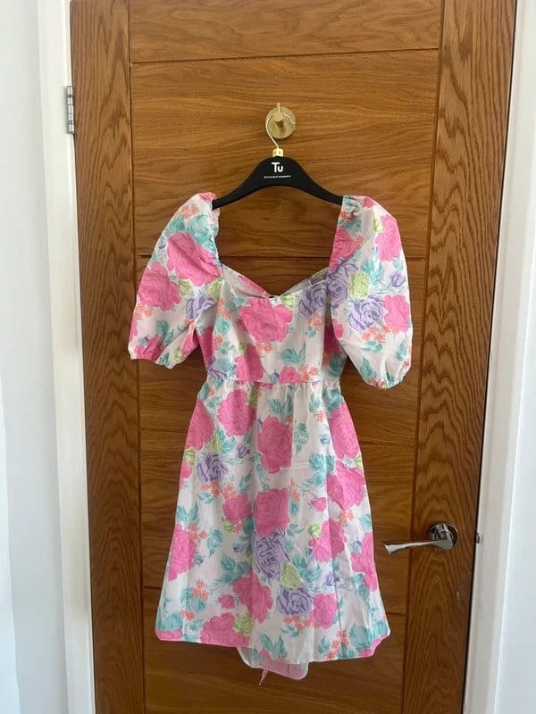 The ASOS Pink Floral Mini Dress is available in sizes M.