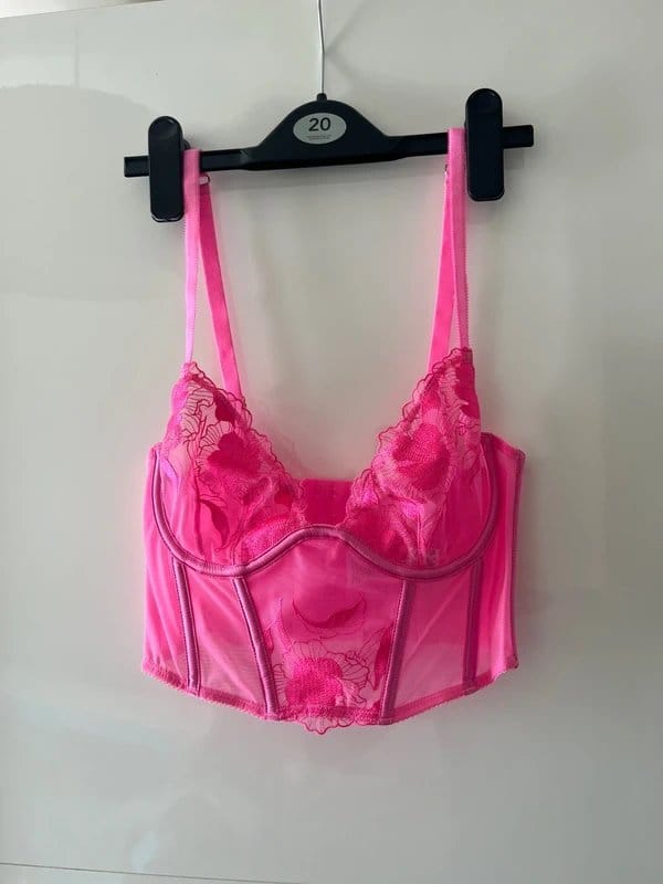 “Pair with a matching pink lace thong and a silky camisole for a cohesive lingerie set.”