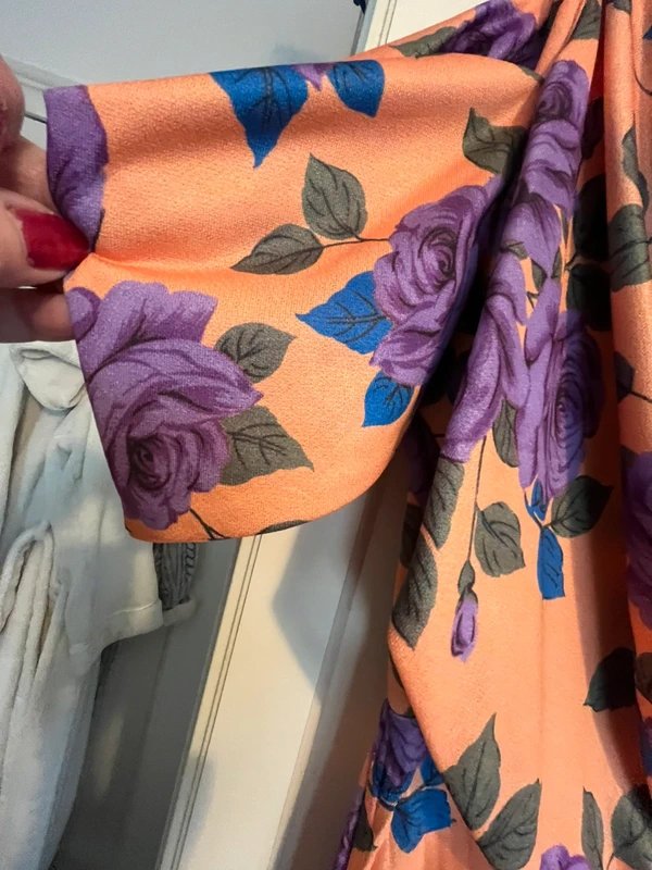 The ASOS Floral Print Midi Dress with Off-Shoulder Sleeves is made from polyester, elastane.