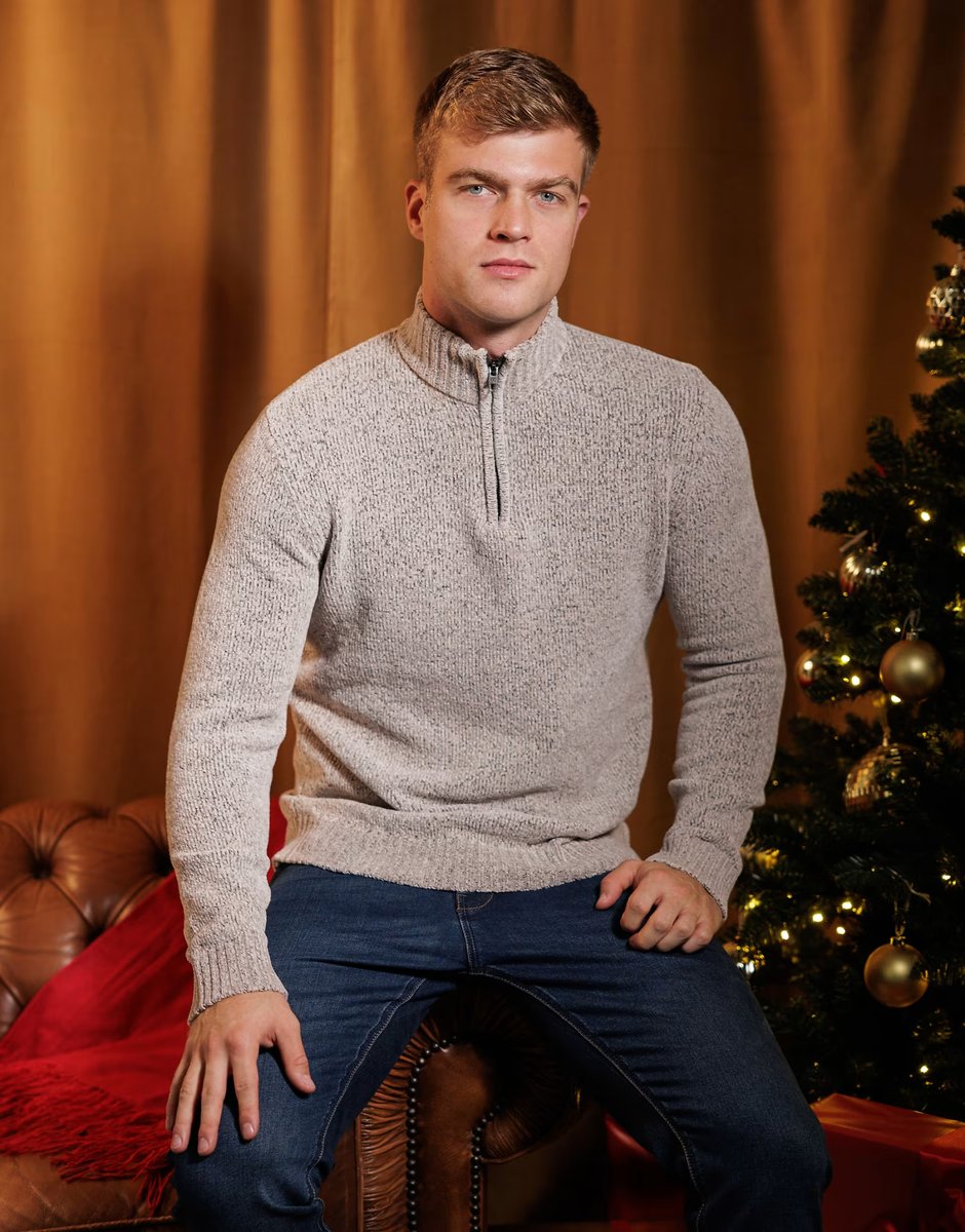 Light Grey Chenille Knit Jumper — perfect for casual, smart-casual, and evening wear. Designed with half zip, crew neckline, full sleeves, crew neckline, light grey, chenille knit. Features classic, modern style for a versatile look.