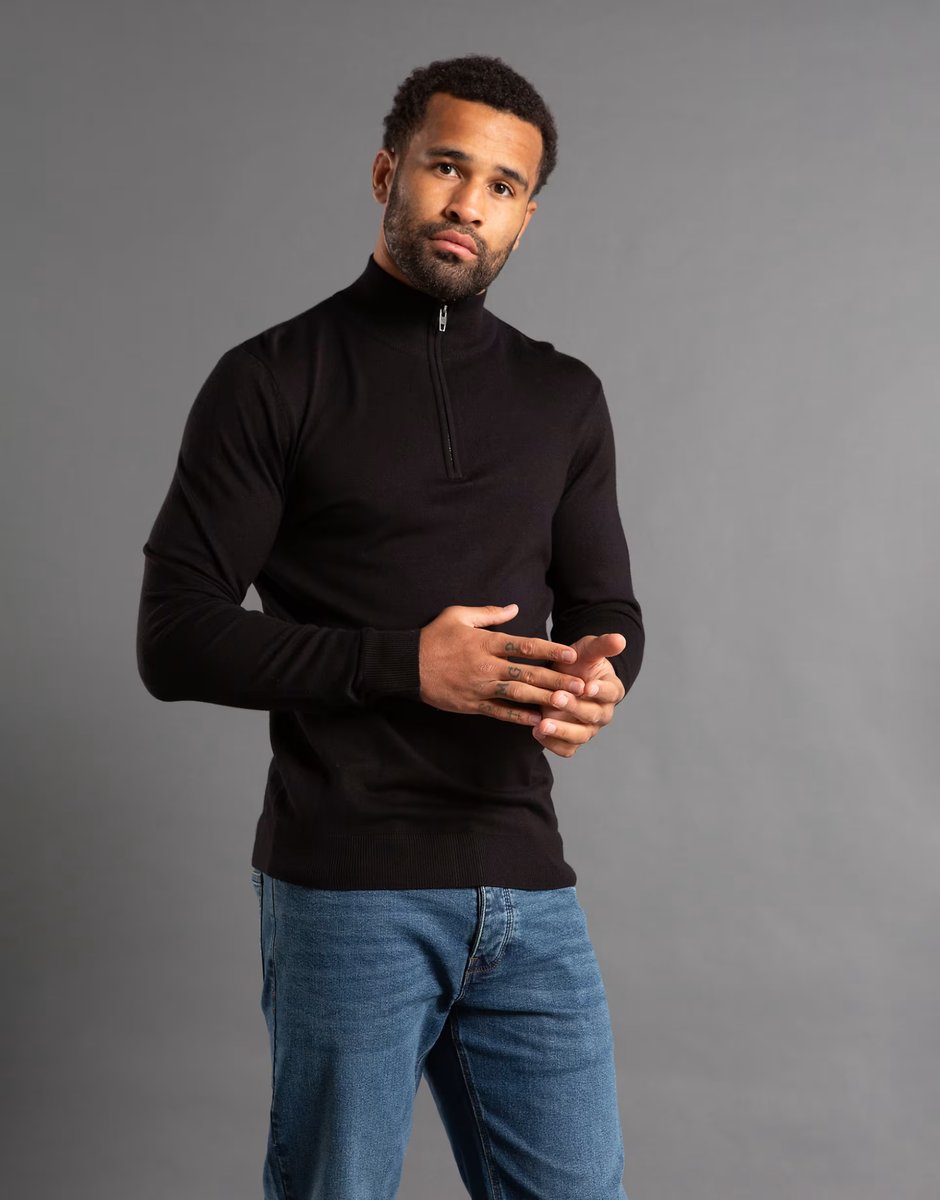 The ASOS French Connection Half Zip Knitted Jumper in Black is available in sizes XXXL, XXL, XL, XS, L, M, S.