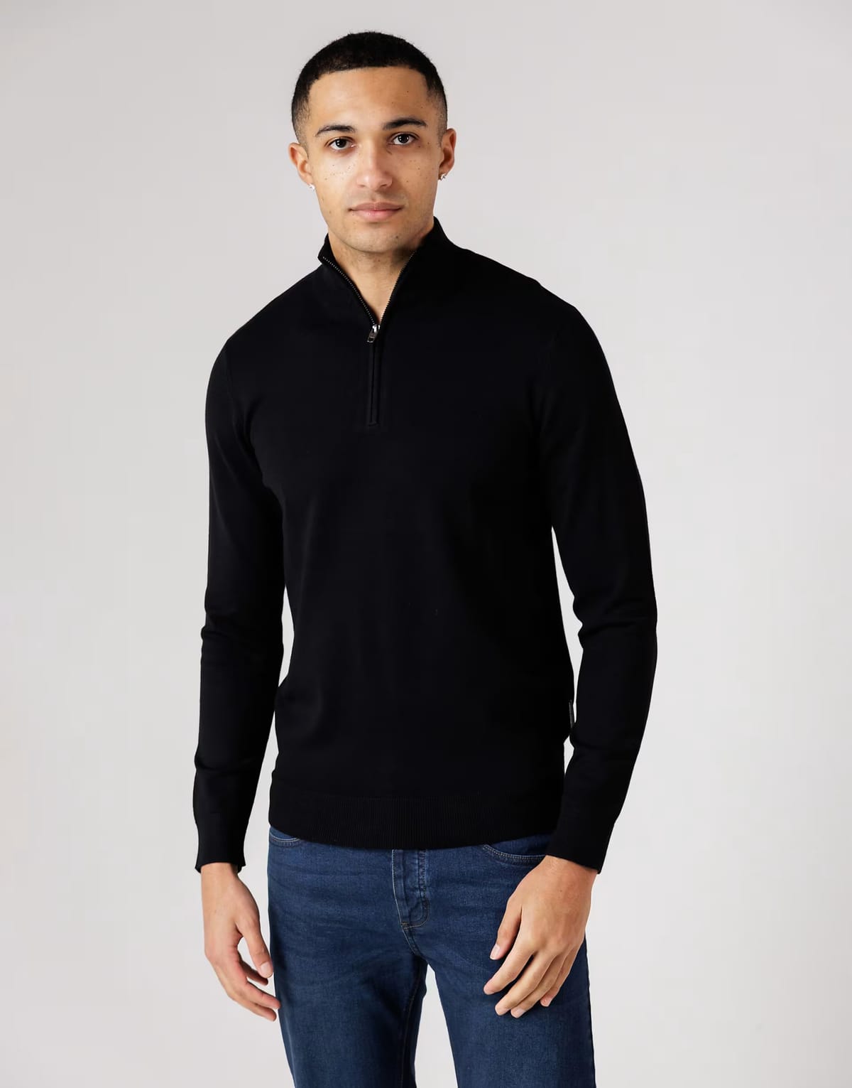 The ASOS Black Half-Zip Knitted Jumper is available in sizes XXXL, XXL, XL, XS, L, M, S.