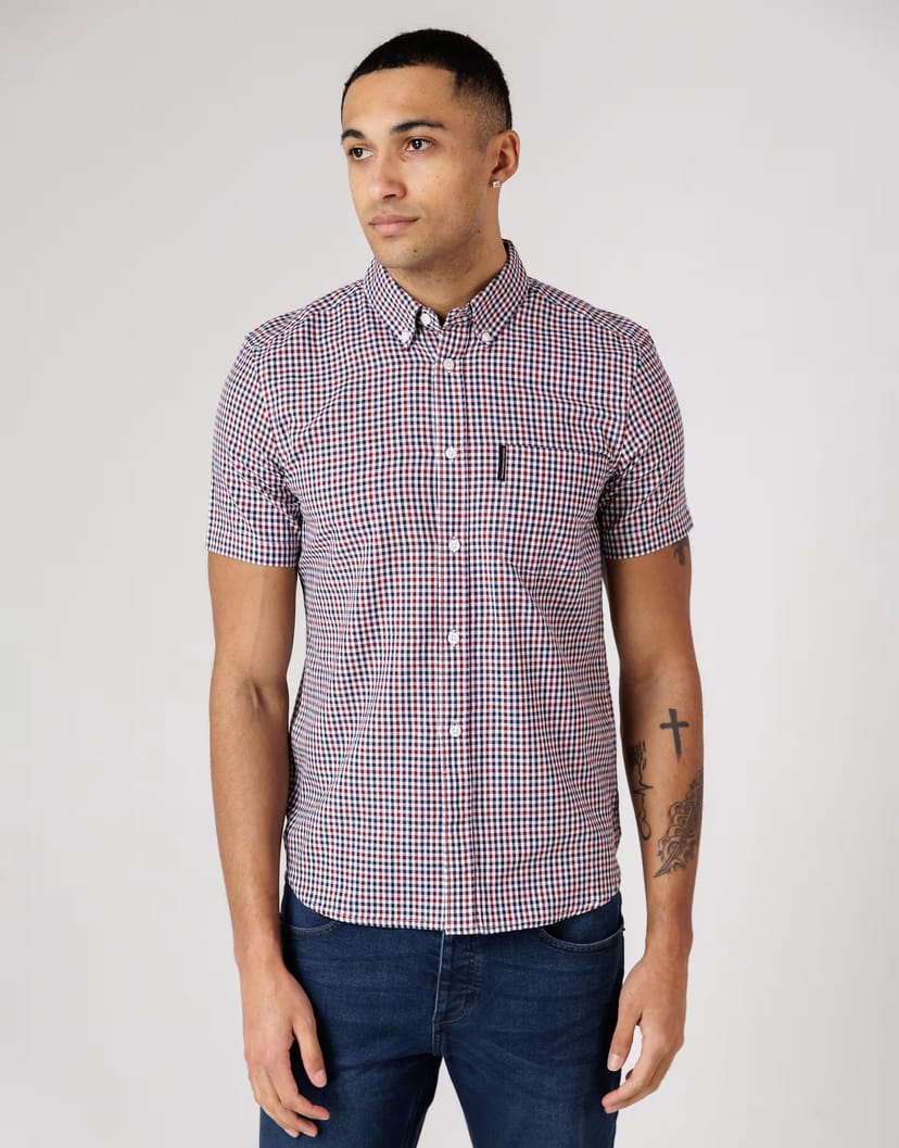 This shirt is a versatile addition to your wardrobe, featuring a red gingham pattern and short sleeves. Made from cotton, it offers a comfortable and breathable fit, perfect for casual outings.
