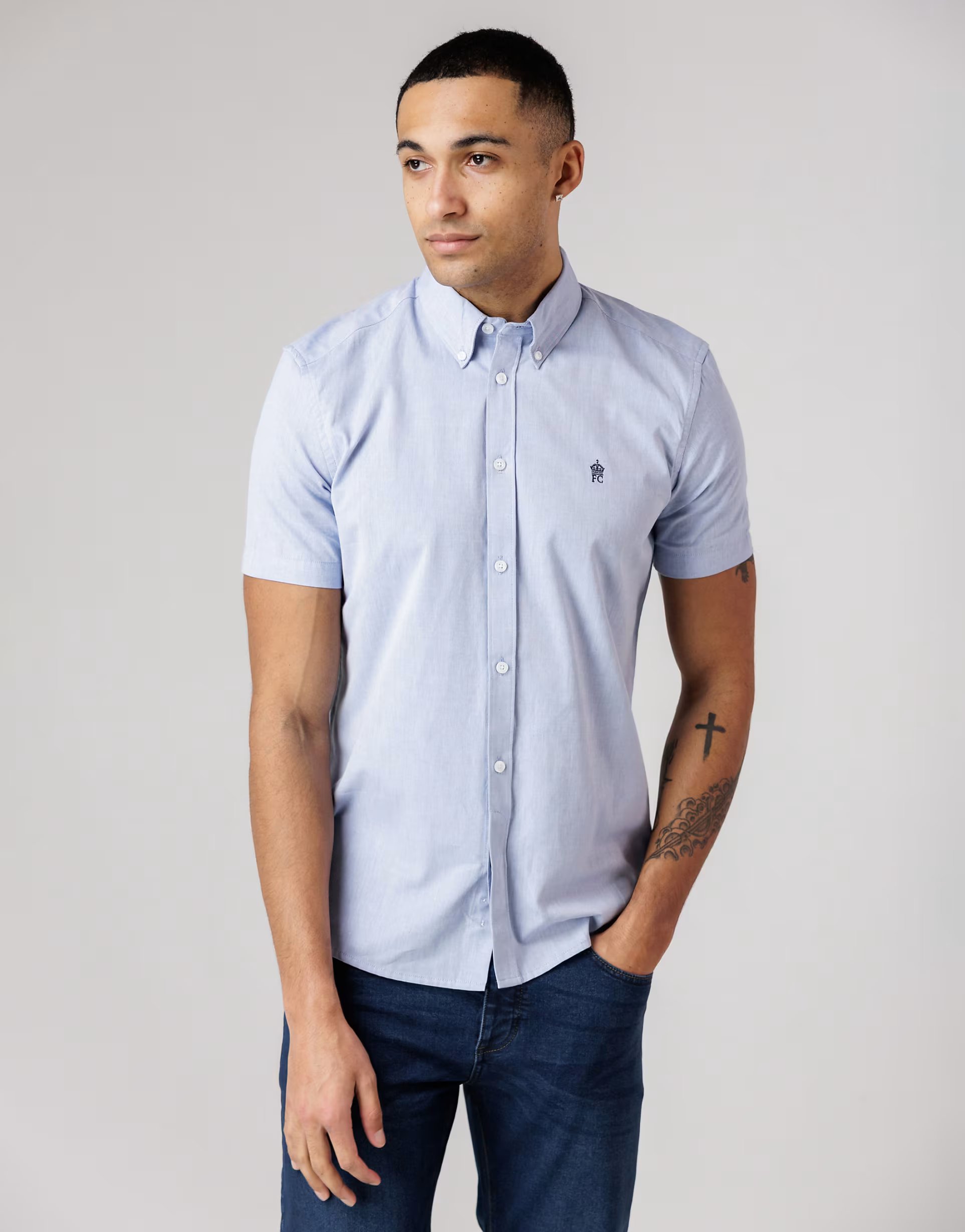 The ASOS French Connection Cotton Short Sleeve Oxford Shirt in Blue is ideal for casual, smart-casual.