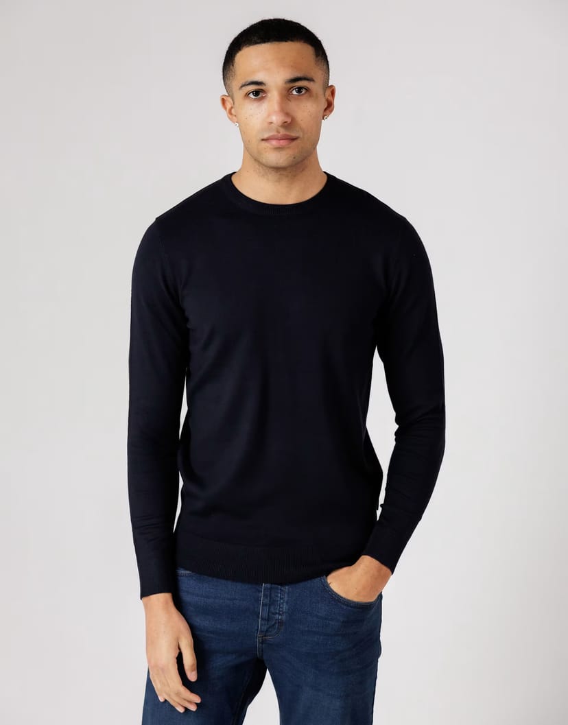 The ASOS Navy Knitted Crew Neck Long Sleeve Jumper is available in sizes XXXL, XXL, XL, XS, L, M, S.