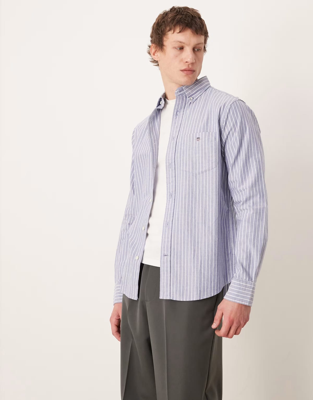 Crafted with college blue pinstripe pattern, this Gant shirt from ASOS features a button-down collar and long sleeves. Perfect for a casual yet polished look.