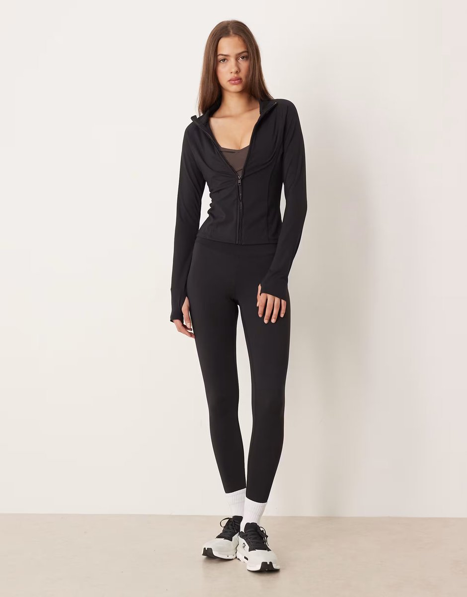 The ASOS Gina Tricot Highwaist Ruched Yoga Co-ord in Black is ideal for casual, gym, yoga.