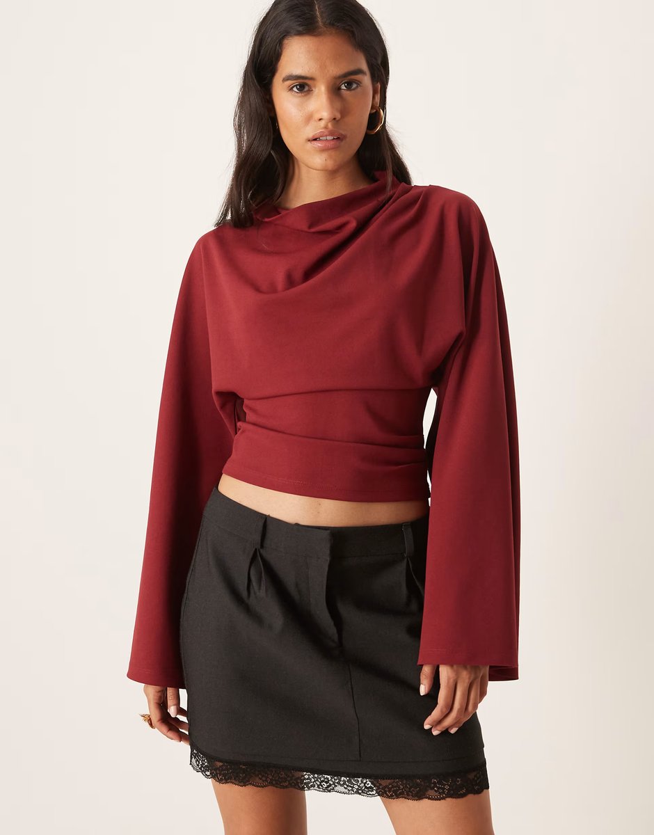 The ASOS Drapey Wide Sleeve Long Top in Burgundy Red is ideal for casual, party.