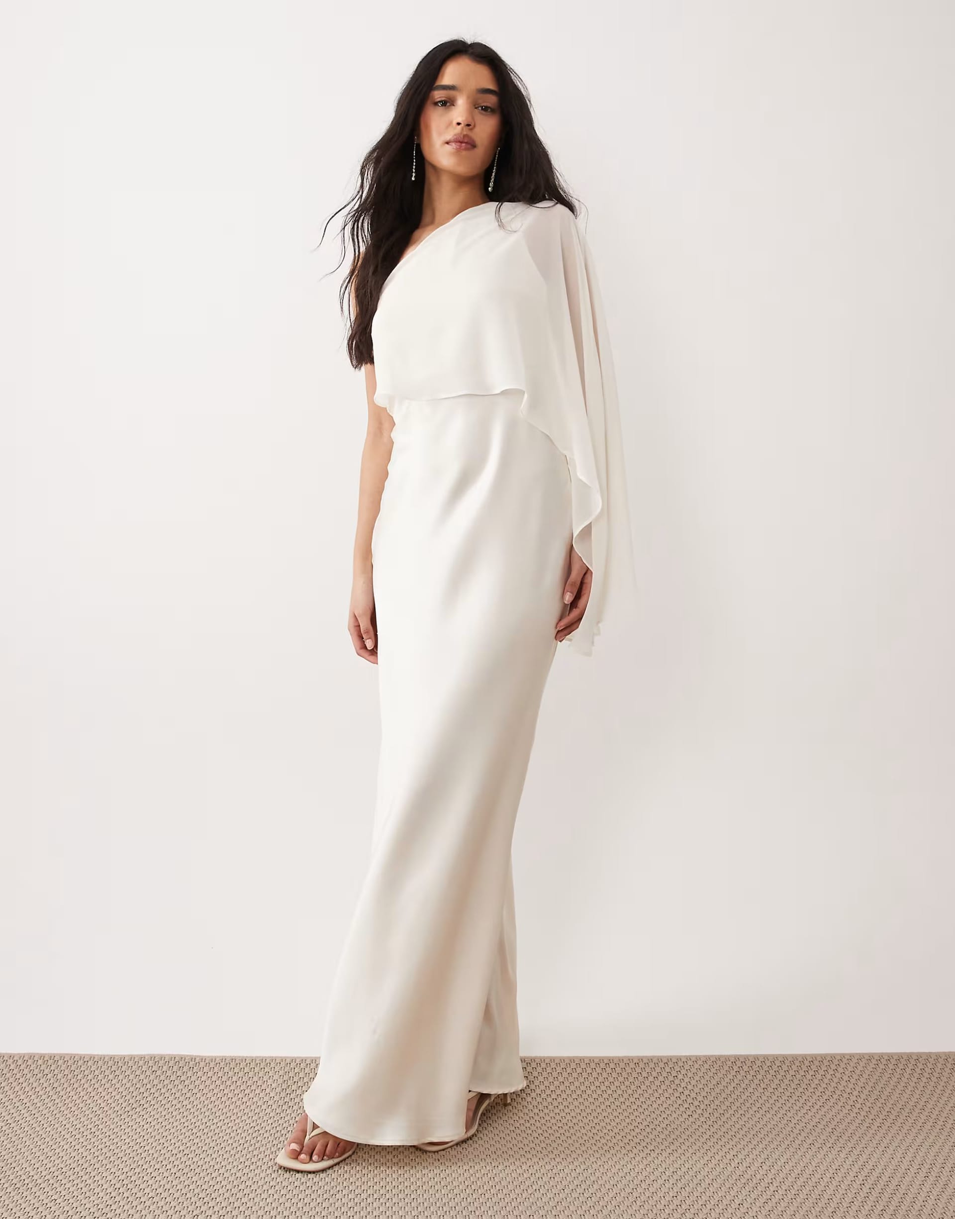 “Pair with cream strappy heels and a matching clutch for a cohesive evening look.”