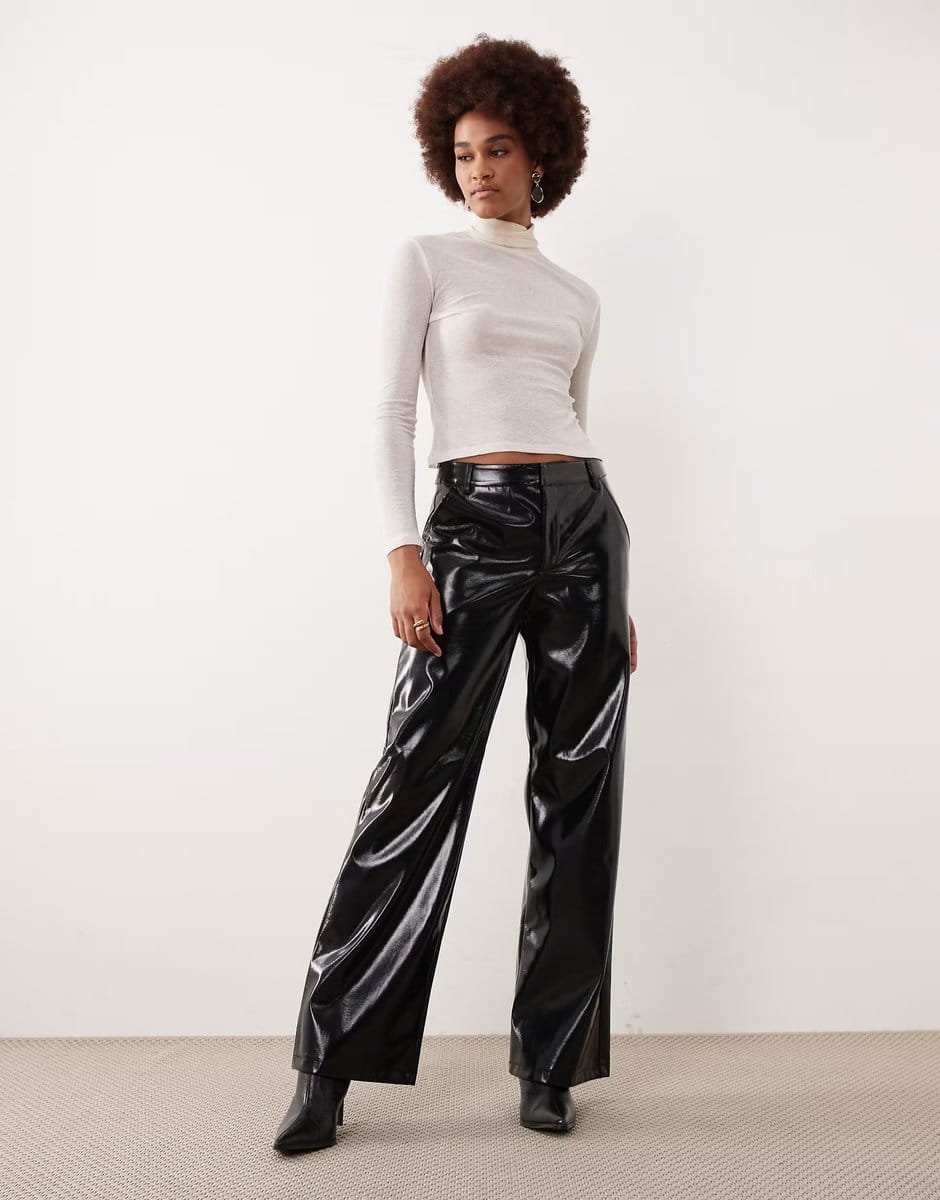The ASOS Gina Tricot PU Straight Trousers in Black is available in sizes XXXL, XXL, XL, XS, L, M, S.