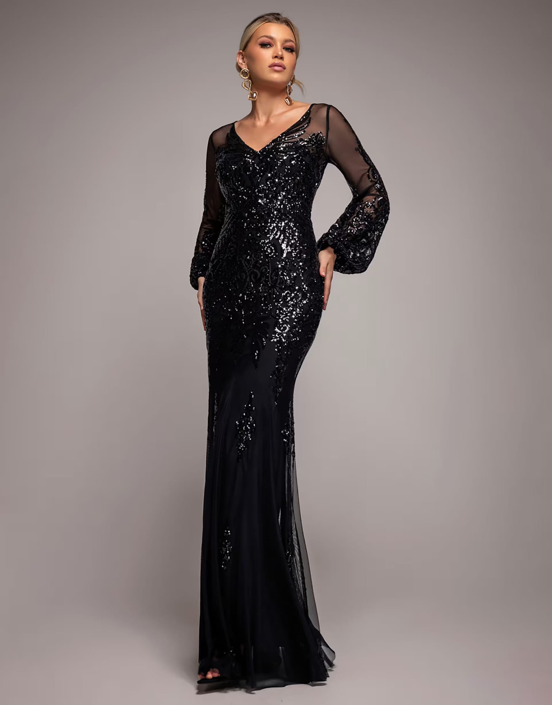 ASOS Black Sequin Bishop Sleeve Maxi Dress