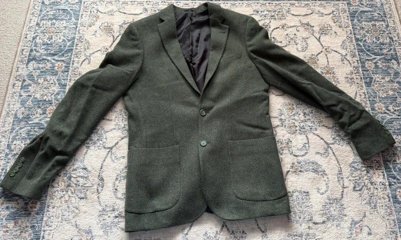 See all outfit ideasStylish ASOS dark green wool blazer with a slim fit for a modern look. Features a single-breasted front, flap pockets, and buttoned cuffs. Perfect for smart-casual occasions.