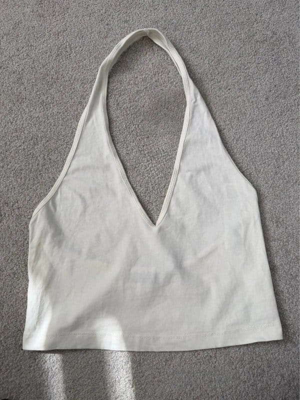 “Pair with high-waisted denim shorts and white sneakers for a casual summer look.”