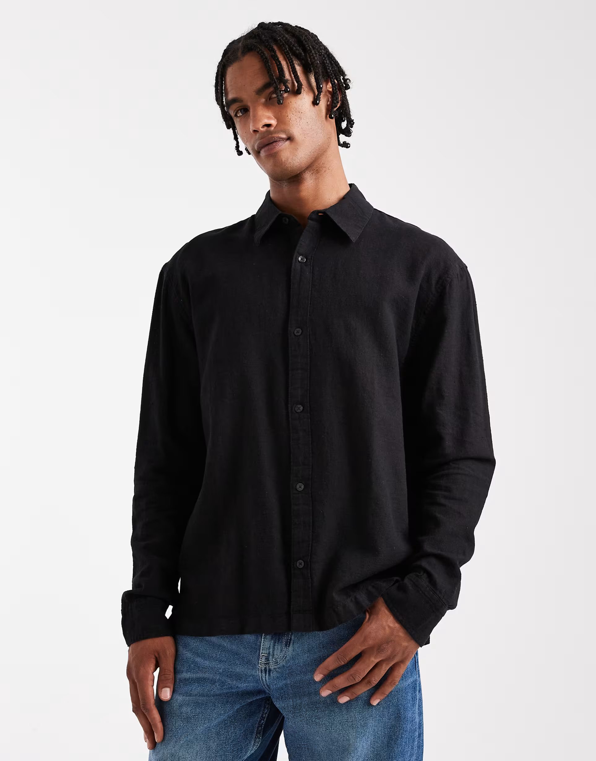 The ASOS Hollister Long Sleeve Linen Shirt in Black is ideal for casual, smart-casual.