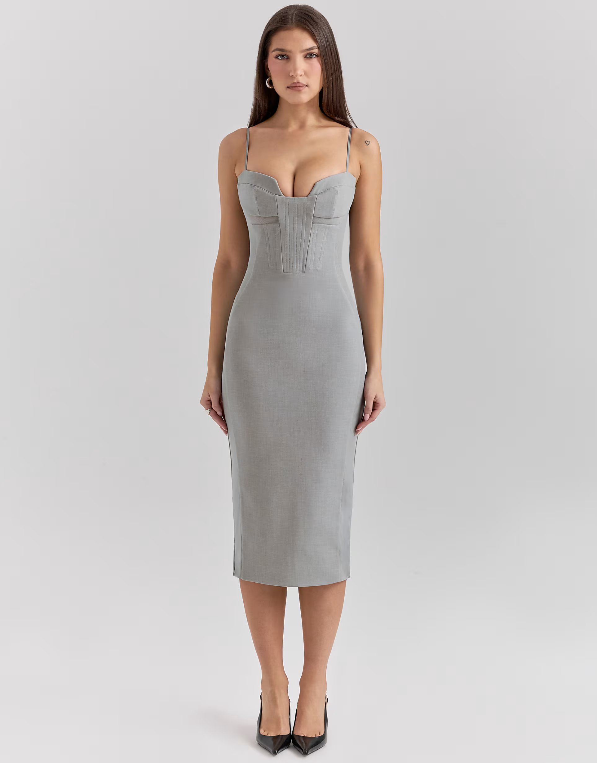 The ASOS House of CB Mesh Panel Midi Dress in Light Grey is ideal for evening, party, formal.