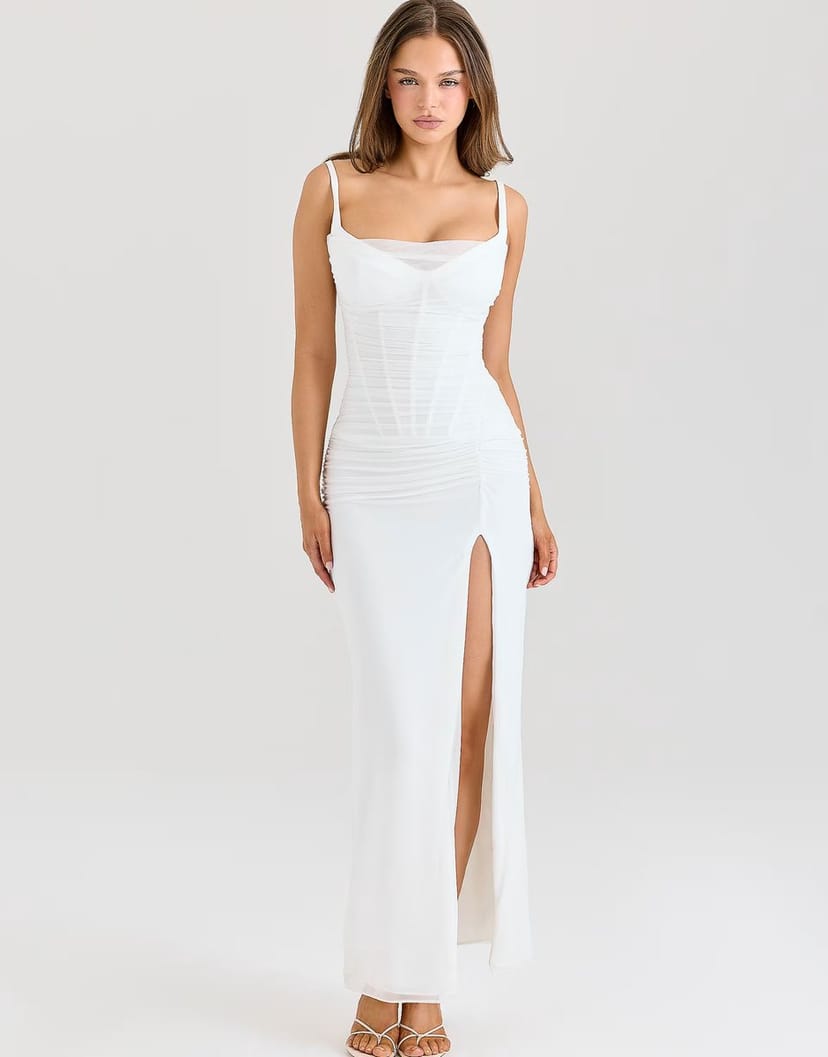 The ASOS House of CB Lini White Mesh Maxi Dress in White is ideal for party, evening, date-night.
