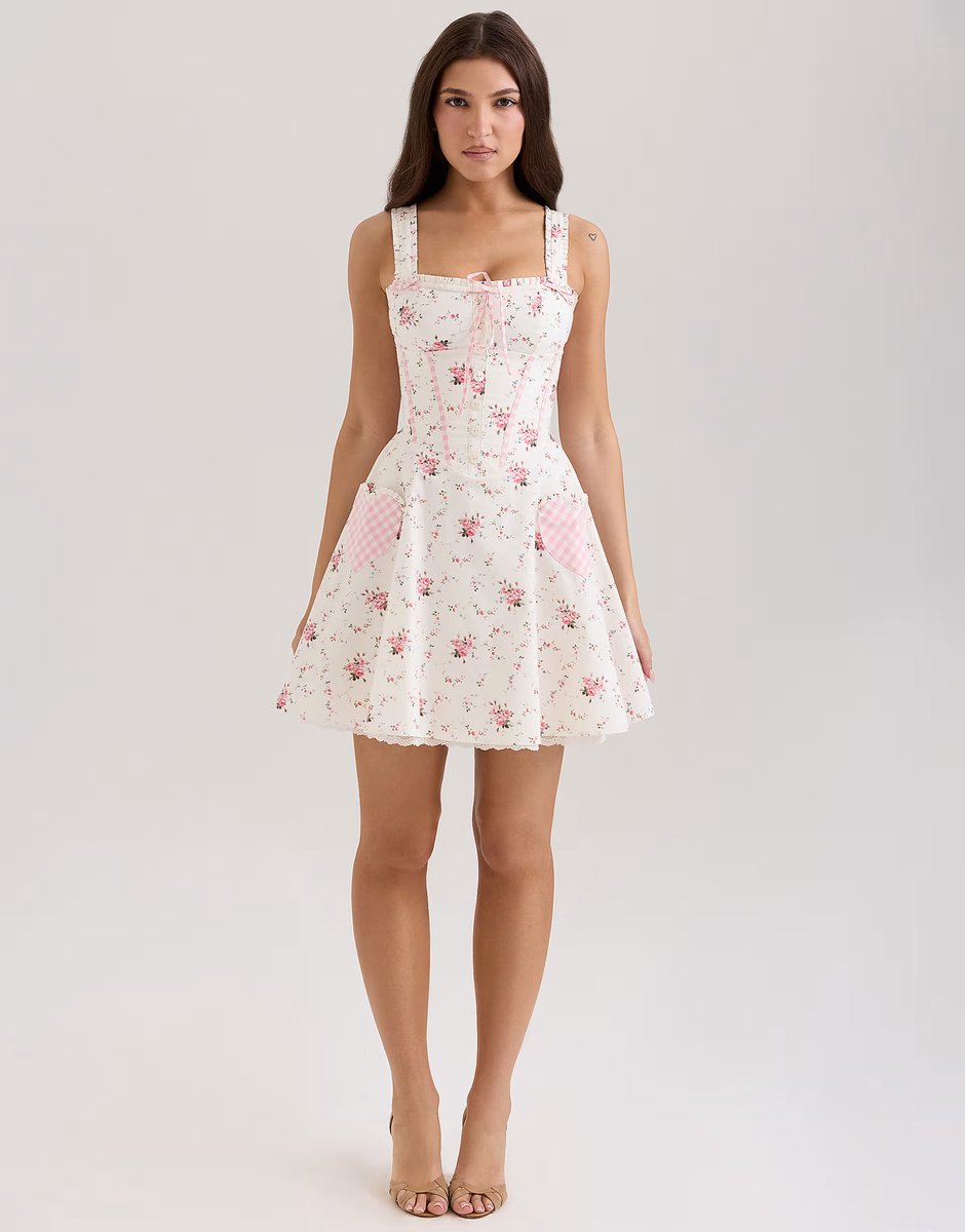 The ASOS House of CB Marianella Print Mini Dress in Cream Rose is available in sizes XXXL, XXL, XL, XS, L, M, S.
